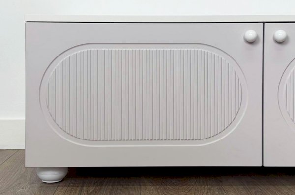 Корпус выполнен из ЛДСП толщиной 16 мм, фасады изготовлены из МДФ в плёнке ПВХ и украшены фрезеровкой, которая придаёт мебели выразительность и подчёркивает стиль серии Милана. Оригинальные круглые ручки и опоры дополняют дизайн, делая тумбу визуально лёгкой и современной.