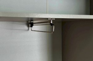 Корпус шкафа изготовлен из ЛДСП, что гарантирует прочность и долговечность. Фасад, покрытый МДФ в плёнке ПВХ, не только выглядит эстетично, но и защищает шкаф от повреждений. Особое внимание заслуживает фрезеровка фасадов, которая придаёт шкафу изысканный вид.