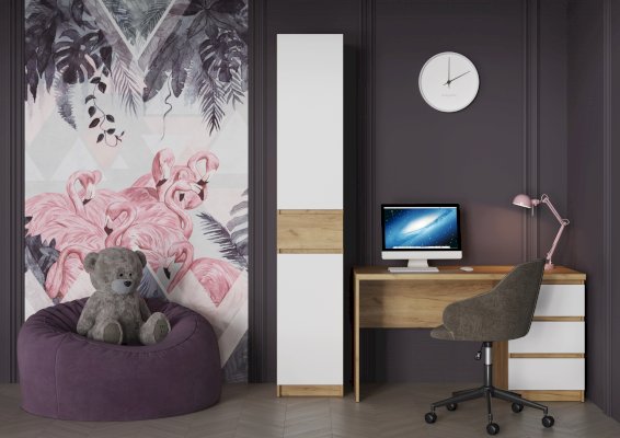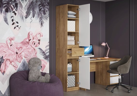 Шкаф КВИК-СТЕП ШК-002 идеально впишется в любой интерьер, будь то скандинавский стиль, минимализм или лофт. Сочетание текстуры дерева "Дуб Крафт золотой" и белых фасадов "Белый шагрень" придают шкафу элегантный и лаконичный вид.